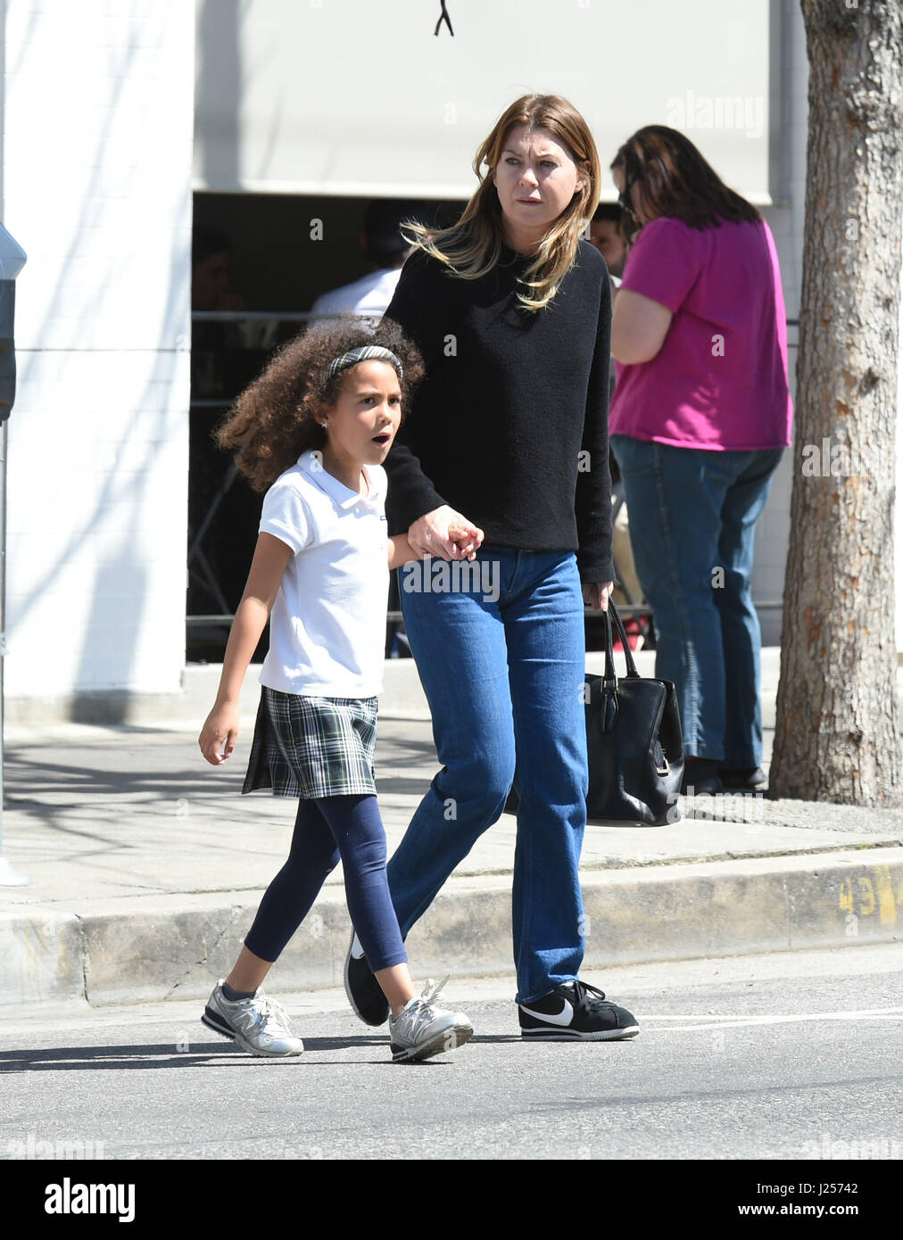 Ellen pompeo and her daughter stella on a play date with a friend in los angeles.